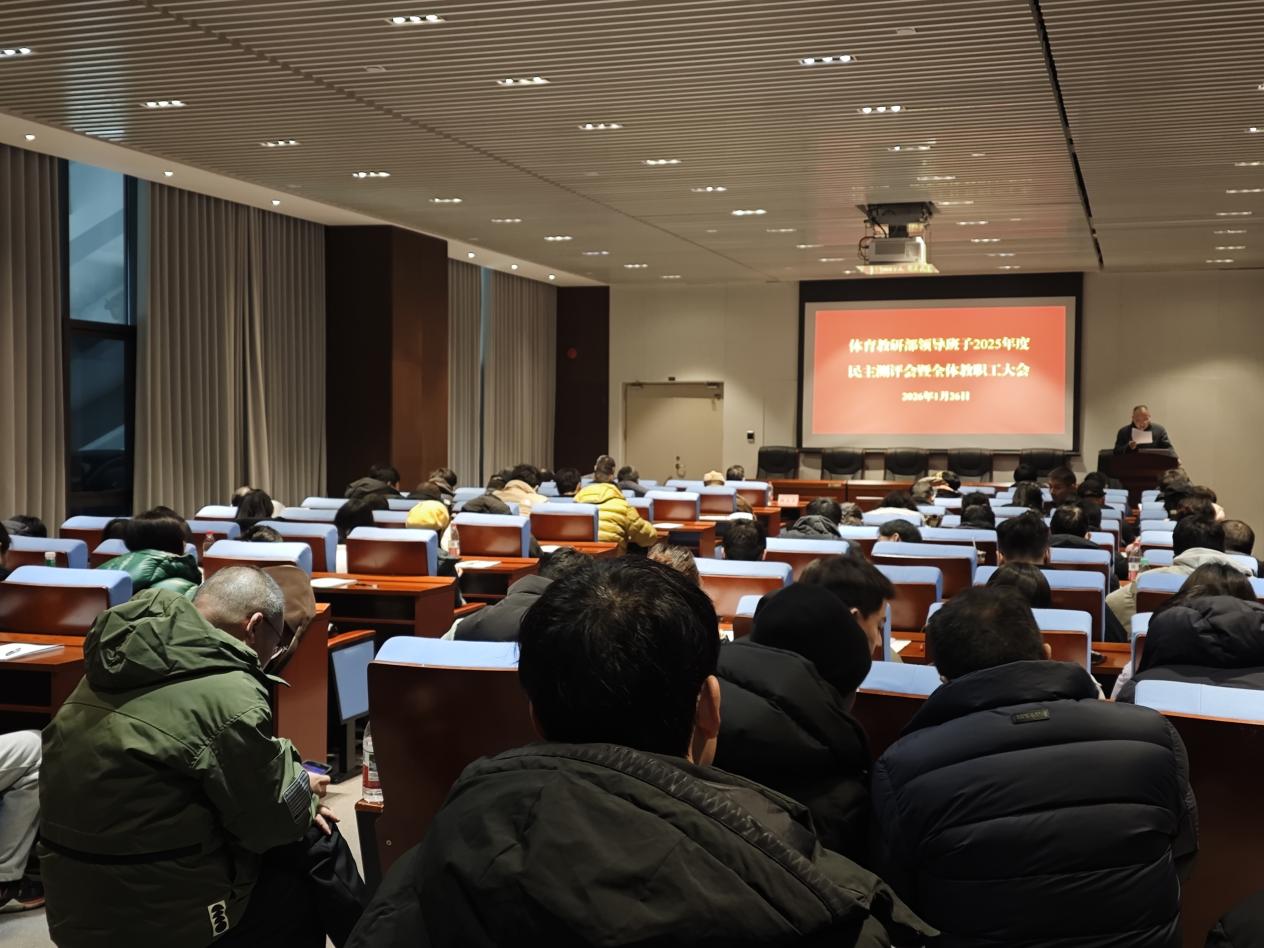 会议伊始,体育教研部党委书记吴湘华代表领导班子作 2025 年度工作述职报告。报告全面回顾了过去一年体育教研部在党建工作、宣传工作、思政教育、公体教学、专业教学、群体活动、竞技体育、科学研究和场馆服务等方面取得的丰硕成果,深入分析了发展过程中面临的挑战与不足,并对2026年重点工作方向作出明确规划。述职结束后,大会严格按照程序开展民主测评,全体教职工本着客观公正的原则,对领导班子工作表现进行评议。