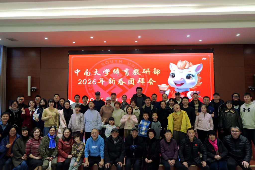 1月30日,中南大学体育教研部2026年新春团拜会在毓秀楼328会议室顺利举行。全体教职工、离退休老同志代表及职工家属欢聚一堂,以“凝心聚力启新程,同心筑梦向未来”为主题,在欢声笑语中回顾过往硕果,共绘新年蓝图。