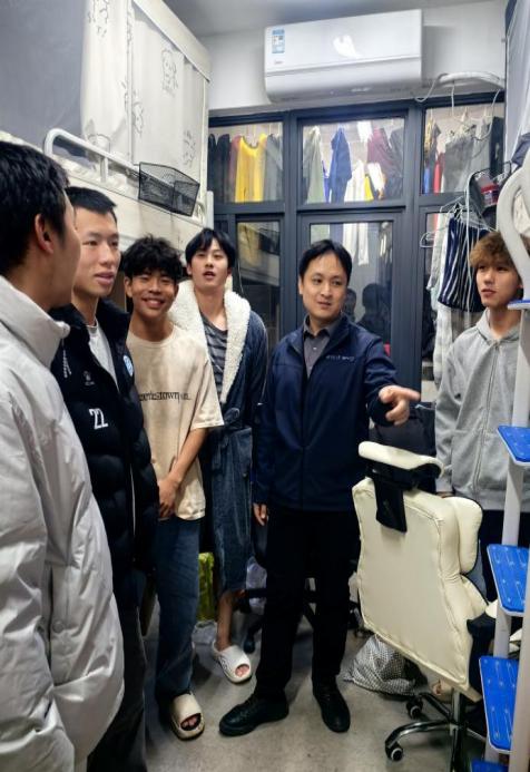 检查过程中,王少清副书记与同学们深入交流,结合冬季高校寝室安全事故典型案例,详细解读违规用电的严重危害,着重强调冬季被褥、衣物等易燃物品集中,一旦发生电气火灾极易造成严重后果,引导同学们牢固树立 “安全第一、预防为主” 的思想,摒弃侥幸心理,严格遵守寝室安全管理规定。针对寝室卫生工作,他指出:“年末岁尾正值各类传染病高发期,整洁的寝室环境不仅能提升居住品质,更能有效降低健康风险,同时也是培养集体责任感和良好生活习惯的重要载体。希望同学们以‘寝室是我家’的主人翁意识,做好日常卫生清扫与内务整理,共同打造安全、整洁、舒适的住宿空间。”